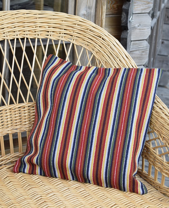 Õmmeldud Nõo kihelkonna rahvarõiva seelikukangast (lõim puuvillane, kude villane).