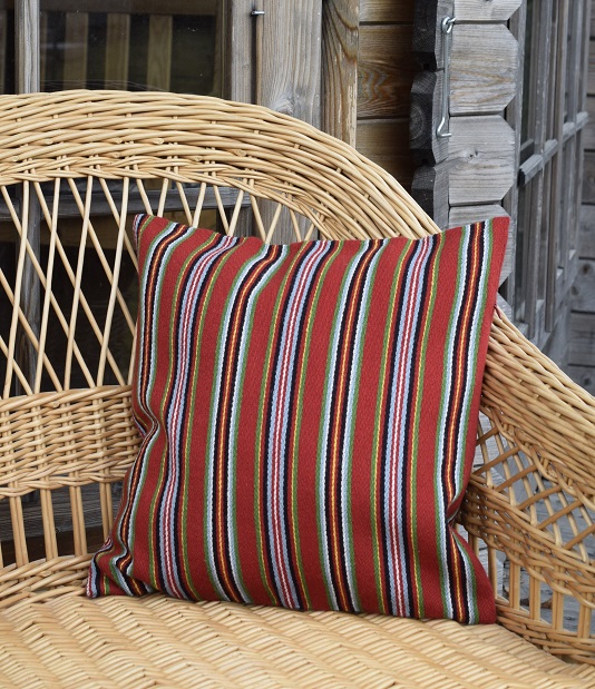 Õmmeldud Pärnu kihelkonna rahvarõiva seelikukangast (lõim puuvillane, kude villane).