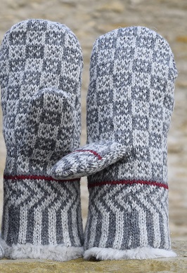 Värvus: hele ja tume naturaalne hall. Kaunistuseks tumepunased triibud.