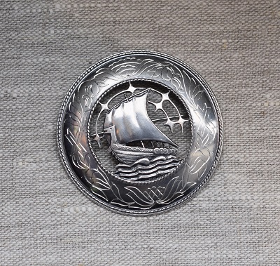 Kauni laeva kujutise ja ornamendiga hõbedast sõlg prooviga 925